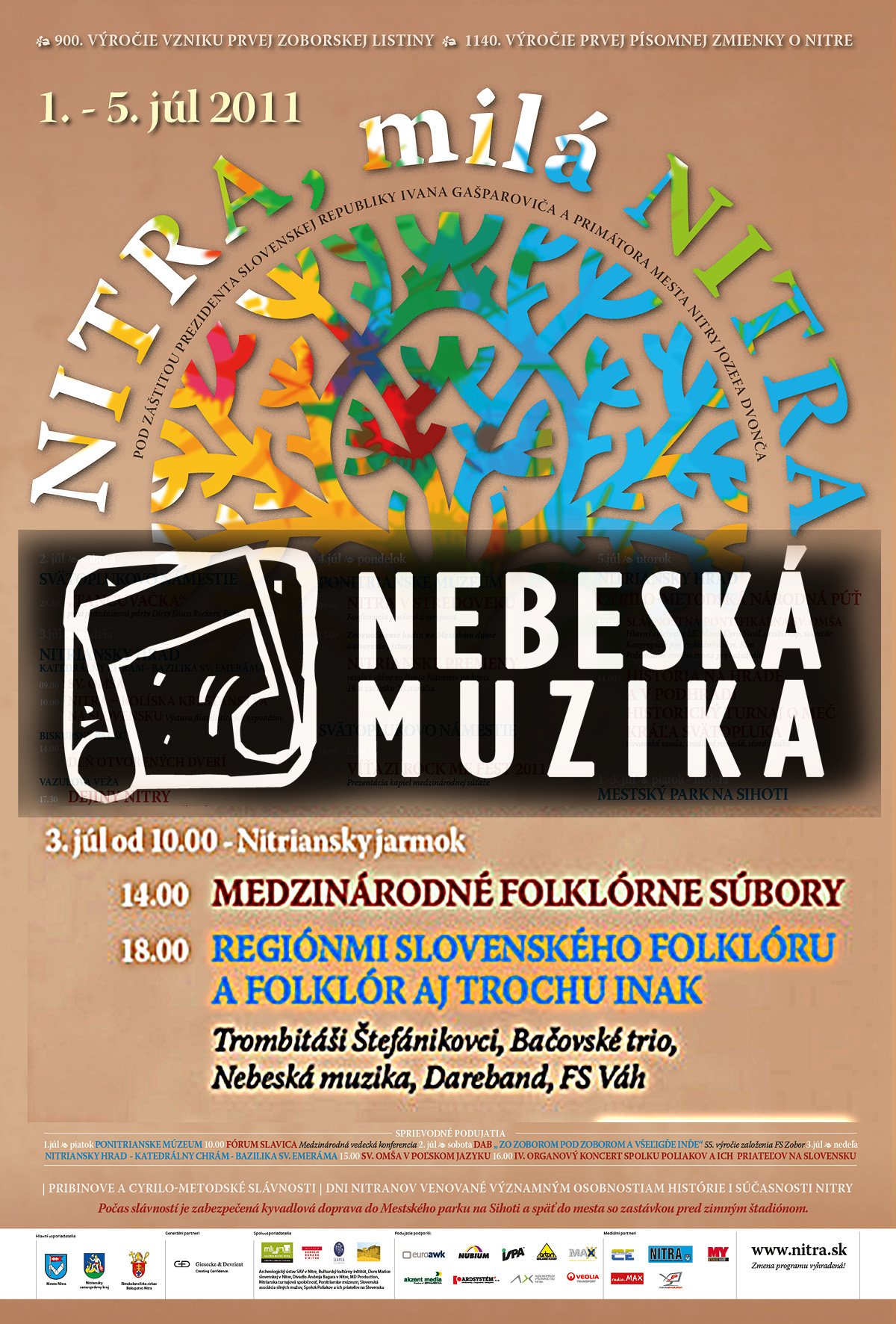 Blíži sa predĺžený víkend a my si opäť zahráme s našimi spriatelenými kapelami: Trombitášmi Štefánikovcami a Darebandom. Nenechajte si ujsť skvelý hudobný zážitok a príďte v nedeľu 3. júla 2011 o 18.00 hod. do Mestského parku na Sihoti v Nitre. V rámci podujatia Nitra, milá Nitra je tam pre Vás pripravený bohatý program s názvom Regiónmi slovenského folklóru a folklór aj trochu inak. Dovidenia v Nitre.