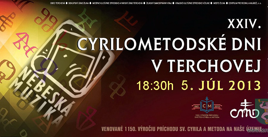 Všetkých srdečne pozývame na koncert dňa 5. júla 2013 o 18:30h na Námestie Andreja Hlinku v Terchovej. V rámci 24. ročníka Cyrilometodských dní Vám Nebeská muzika spolu so svojimi hosťami Alojzom Muchom a Rudolfom Patrnčiakom zahrajú sláčikový bigbít z Terchovských osád. Tešíme sa na Vás.